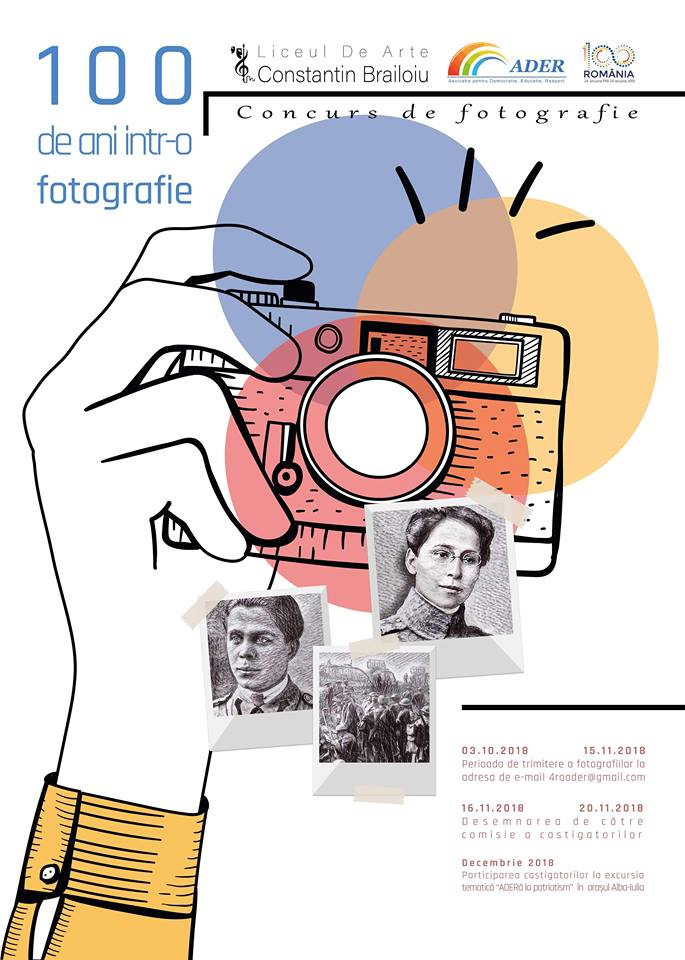 Liceul de Arte „Constantin Brăiloiu” din Târgu Jiu, împreună cu Asociaţia pentru Democraţie Educaţie Respect (ADER), organizează concursul intitulat „100 de ani într-o fotografie”. Competiția își propune să contribuie la promovarea conștiinței și identității naționale în rândul tinerilor, importanța făuririi Marii Uniri, cinstirea memoriei și sacrificiilor înaintașilor.