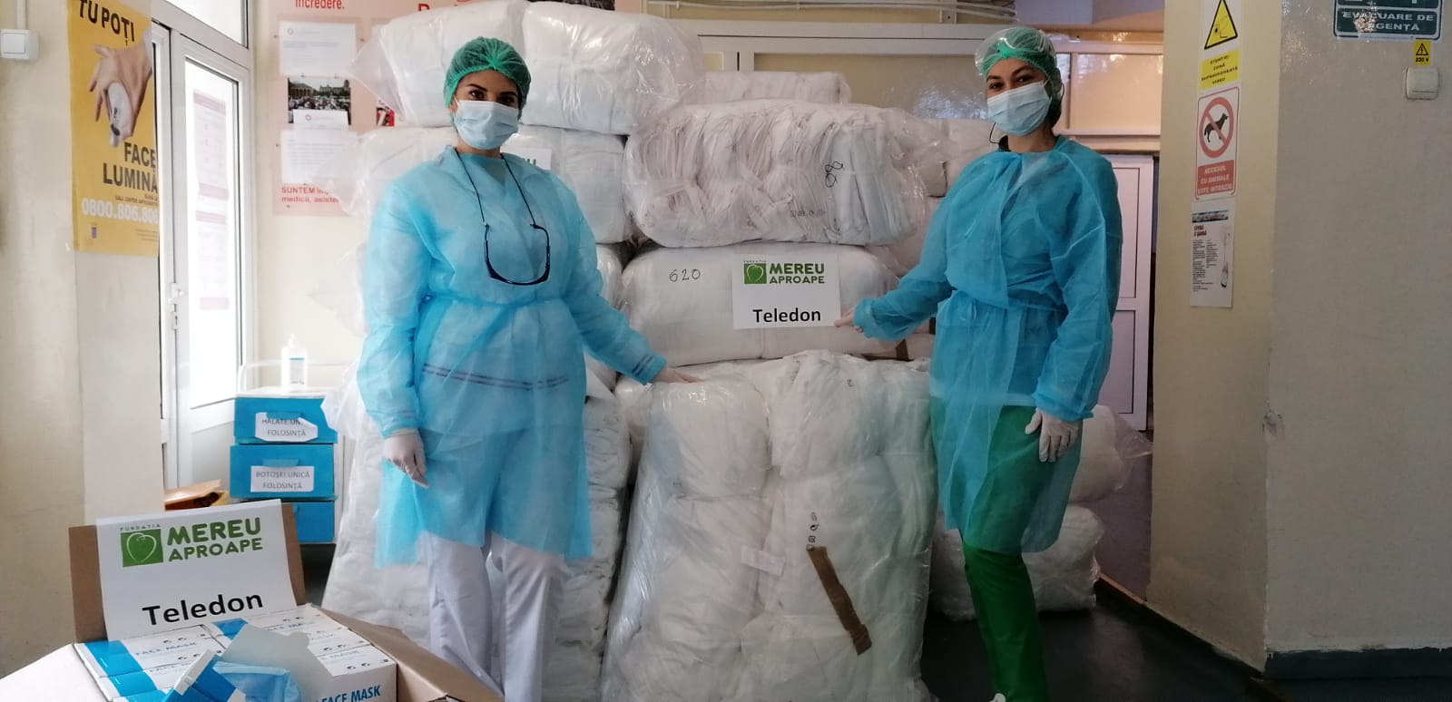 Fundația Mereu Aproape a transmis aseară spre Spitalul Rovinari o donație consistentă de materiale sanitare, necesare personalului medical al unității gorjene. Este vorba despre 11.000 de măști, 5000 de halate de unică folosință și de 1250 de combinezoane. Produsele au fost achiziționate din donațiile românilor la Teledonul realizat de fundație și de trustul media, din care fac parte Antena 1 și Antena 3.