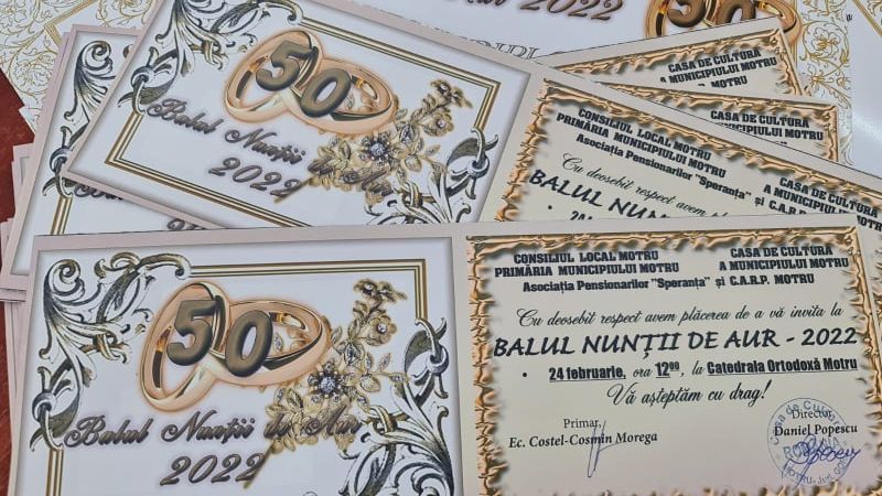 Autoritățile din Motru vor marca, de Dragobete, Nunta de Aur pentru 12 cupluri din localitate care împlinesc, in acest an, 50 de ani de căsnicie.