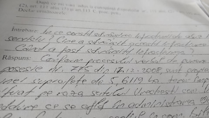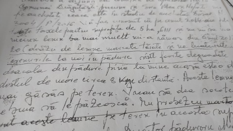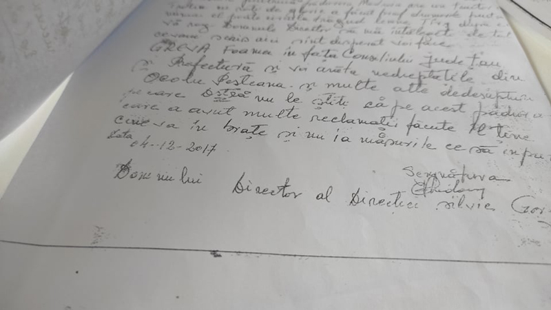 ,,În această perioadă am făcut mai multe drumuri, atât la Direcție, cât și la Ocol, în dorința de a mișca oarecum lucrurile. Am discutat inclusiv cu șeful de District, care mi-a spus că sesizarea a primit-o de la superiorul său, că ar fi contactat pădurarul, pe Modroiu, dar că respectivul ar fi refuzat să revină în pădure, pe motiv că între timp i se desfăcuse contractul de muncă, fiind acuzat de delapidare.
