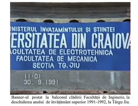 Data de 30 septembrie 1991, ora 11:00, a marcat deschiderea primului an de învățământ superior de ingineri la Târgu Jiu. Festivitatea de deschidere a avut loc în holul de la intrarea în clădirea fostului Liceu Economic, în care nou înființatele secții de ingineri au primit din partea organelor administrației locale sălile din aripa dinspre Calea Eroilor. Accesul studenților la aceste săli se făcea, ca și astăzi, pe intrarea care deservea Liceul Economic, a cărei arhitectura era similară cu intrarea de acces în Liceul “Tudor Vladimirescu”. Pentru a marca deschiderea acestui important eveniment s-a confecționat un banner care s-a fixat pe partea frontală a balconului clădirii unde urmau să funcționeze secțiile de ingineri nou înființate.