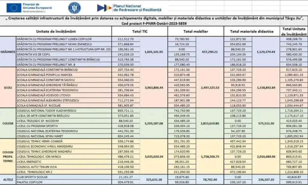 Urmează, în curând, să demarăm licitațiile pentru achiziționarea mobilierului, dar și a materialelor didactice care vor ajunge la școlile din municipiu. Vă prezint lista unităților de învățământ și valoarea în lei a echipamentelor care vor fi achiziționate”, a anunțat primarul Romanescu.