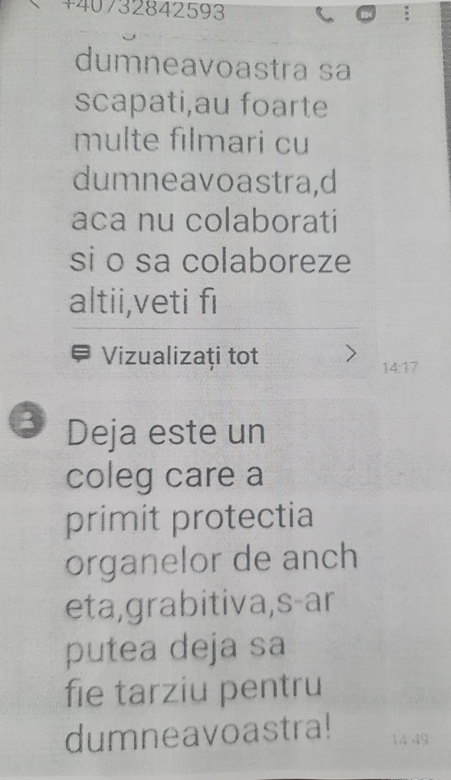 Cei mai slabi de îngeri sunt intimidați direct iar alții sunt momiți cu posturi călduțe doar să accepte să zică ceva rău la adresa primarului. În spațiu public apar mesajele primite de salariați pe telefoane. Oamenilor li se spune direct că au fost filmați și dacă nu vor vorbi vor împărți aceiași celulă cu Morega. Unul dintre mesaje este trimis pe 13 martie, ca pe 17 martie Matei să publice, pe Opinia de Motru, pentru credibilitate în rândul viitorilor audiați, fotografiile cu cei care au cosit pe terenul soției primarului.