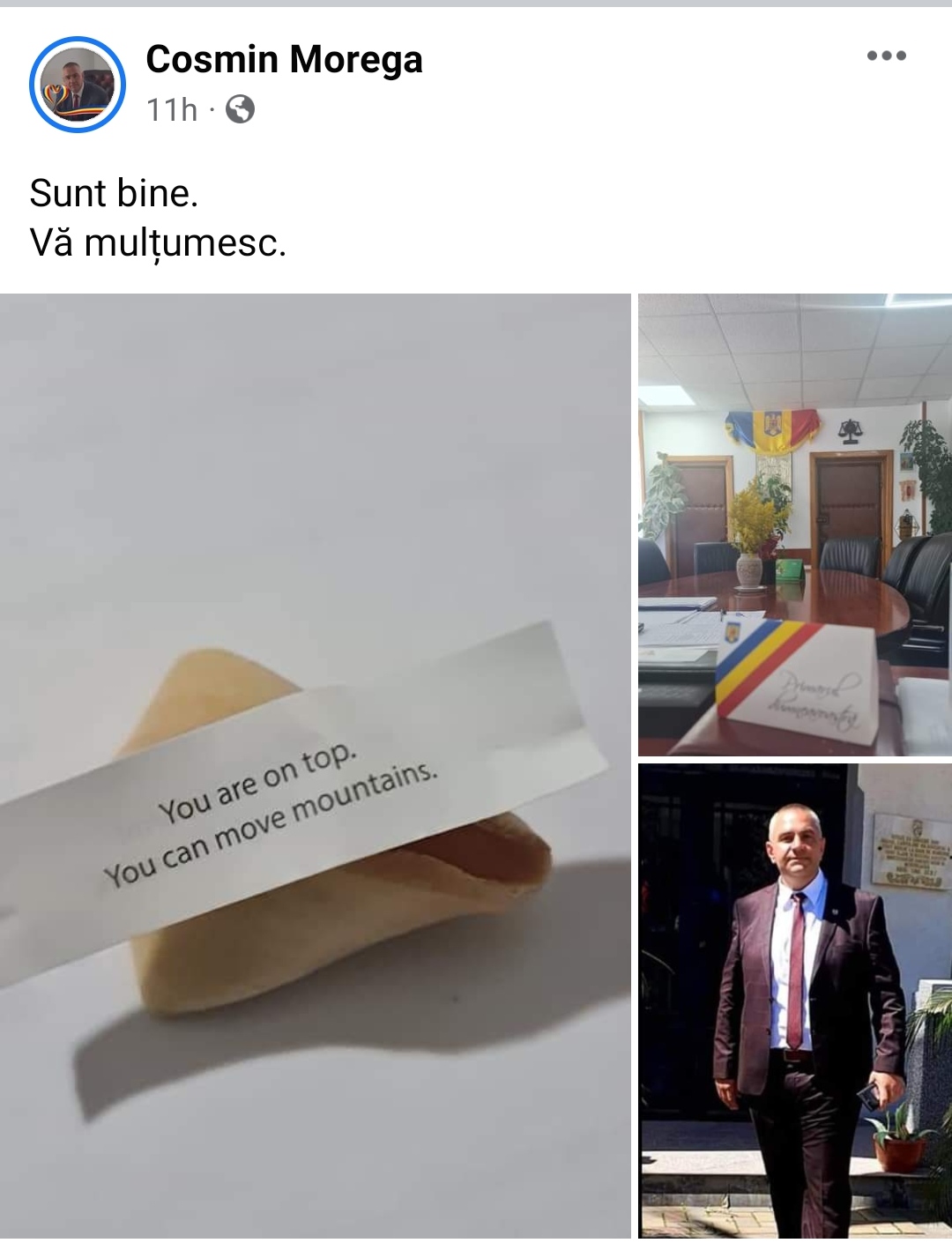 Asaltat de presă, de rude și cunoscuți, primarul Cosmin Morega a liniștit ieri pe toată lumea. Era liber și nevătămat. Edilul a vorbit despre abuz, șantaj, intimidare. După cele prezentate mai sus, în speță este vorba despre conspirație, complicitate, interese de grup, politic și multă premeditare.