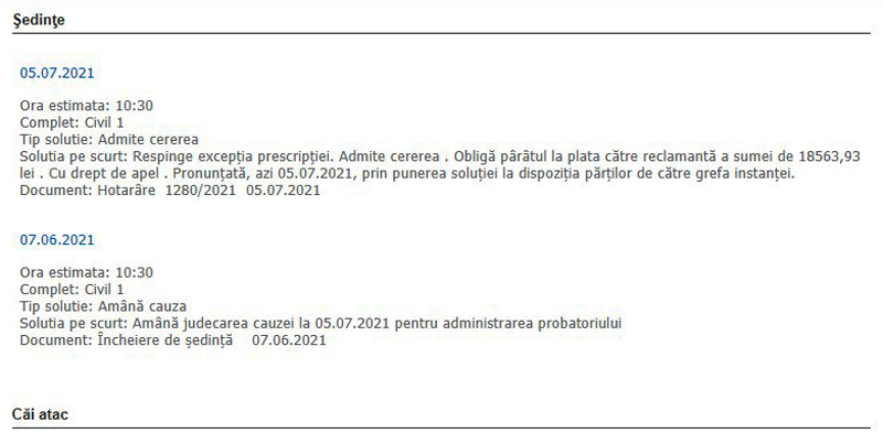 Potrivit legii, asociația de proprietari, prin președinte, are dreptul de a acționa în instanță proprietarul care se face vinovat de neplata cotelor de contribuție la cheltuielile asociației mai mult de 60 de zile de la termenul scadent, respectiv 90 zile de la afișarea listei, informând membrii asociației prin afișare la avizier. Dat în judecată, motreanul rău-platnic a formulat întâmpinare, invocând excepția prescripției pentru penalități și o parte din debitul principal. Din acest temei, judecătorul a admis efectuarea unei expertize contabile, pe cheltuiala bărbatului, dar acesta a refuzat să achite onorariul de expert. În acest sens, la al doilea termen, Judecătoria Motru a dispus respingerea excepției prescripției și a admis cererea asociației de proprietari. „Obligă pârâtul la plata către reclamantă a sumei de 18.563,93 lei. Cu drept de apel”, potrivit sentinței din 5 iulie. Iar acest caz nu este unul singular. Asociațiile din Motru au deschis sute de procese în instanță în speranța că vor recupera restanțe vechi de câțiva ani.