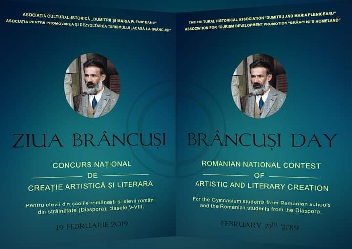 Asociația cultural-istorică “Dumitru și Maria Pleniceanu” și Asociația “Acasă la Brâncuși” organizează în perioada 23 ianuarie – 19 februarie 2019 Concursul Național de Creație Artistică și Literară “Ziua Brâncuși”, ediția I.