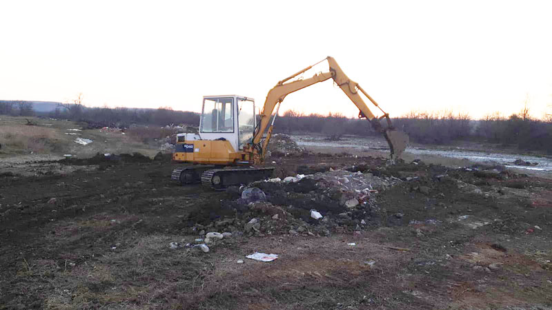 Cu un utilaj propriu, fără să ceară vreun ban de la comunitate, s-a apucat, la finalul săptămânii trecute, să împingă deșeurile răsfirate pe o suprafață de 300 de mp de teren, asta pentru a le arăta și localnicilor că nu este indicat să mai depoziteze în acest loc.
