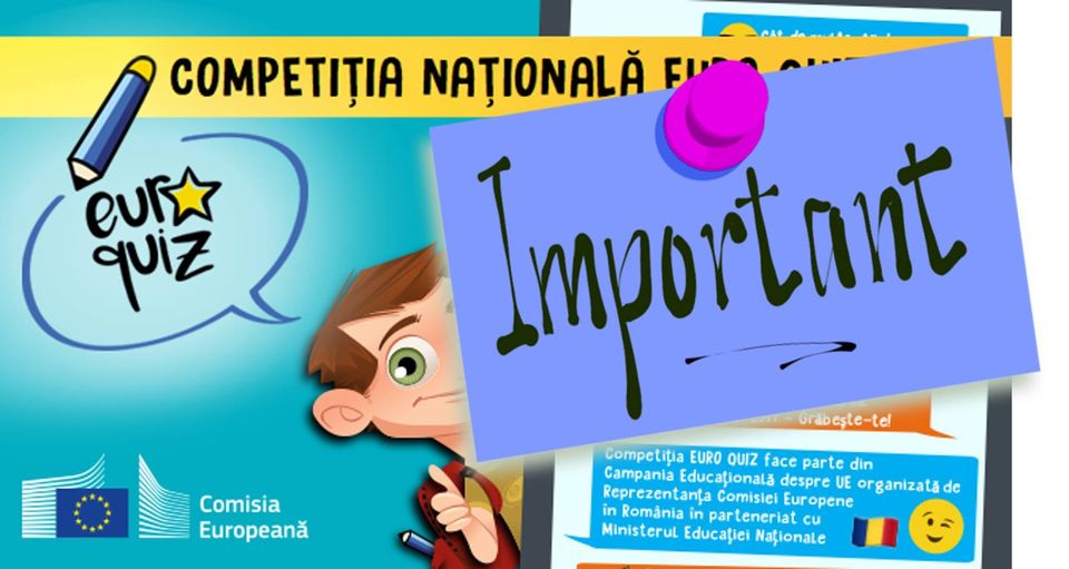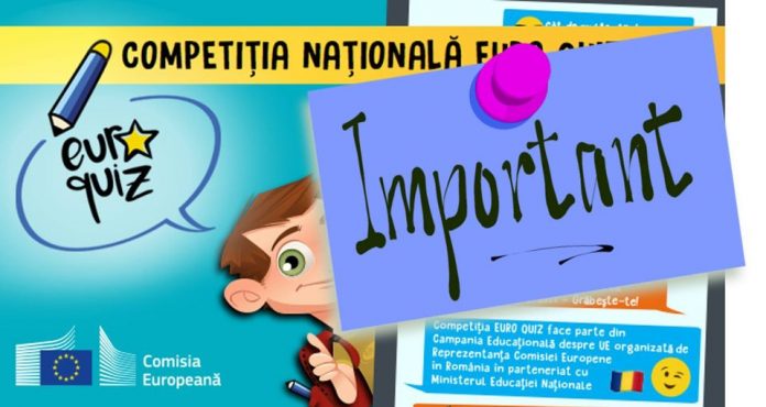 Vești bune pentru elevii de gimnaziu care doresc să participe la concursul ,,Euro Quiz”, organizat de Reprezentanța Comisiei Europene în România: termenul de înscriere a fost prelungit. Cei interesați au acum timp până pe 10 noiembrie, ora 17.00, pentru a forma echipe și a se înscrie în competiție.