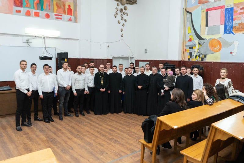Aceleași gânduri de mulțumire se îndreaptă și către ceilalți colaboratori din școală în organizarea acestui eveniment, domnii și doamnele profesoare: Dumitru Bărăscu, Cristina Buzducea, Ramona Filip, Doina Marica, Claudia Alexandrescu, Claudia Arsenie, Angelica Mirea, Mirela Popescu și Lavinia Cornescu. Aduc mulțumiri și foștilor membri ai Corului Liceului Teologic care ne-au bucurat sufletele prin prezența lor în această seară, precum și dumneavoastră tuturor”, a transmis Arhid. Prof. Dr. Nicușor Lăzărică. Corul Liceului Teologic a fost înființat în anul 2011, de către Arhid. Nicușor Lăzărică, profesor la Catedra de Muzică Bisericească. Corul a participat, de-a lungul celor 10 ani de activitate, la diverse evenimente cultural-artistice, simpozioane sau concursuri găzduite atât în Târgu-Jiu cât și în alte orașe ale țării. Corul face parte din Proiectul național Cantus Mundi, coordonat de membrii Corului Național de Cameră „Marin Constantin – Madrigal”. Membrii Corului Liceului Teologic au participat în anul 2019 la Gala „Cantus Mundi”, organizată la Târgu-Jiu.