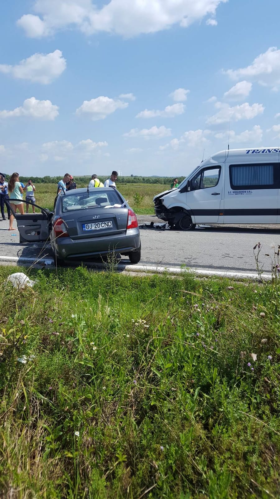 Inițial, pompierii au precizat că zece persoane au fost rănite, după ce un microbuz s-a ciocnit cu un autoturism condus de un bărbat de 80 de ani, în comuna Ciuperceni.