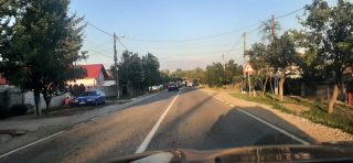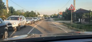 Coada de mașini se întinde pe câțiva kilometri. Interesat este că mașina care a lovit pietonul se afla pe contrasens.