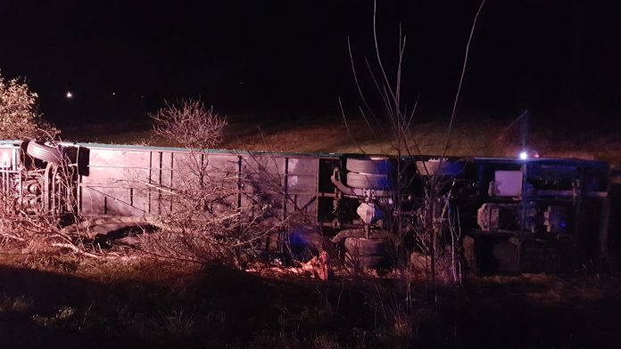ACCIDENT grav! Un autocar cu 72 de persoane s-a răsturnat