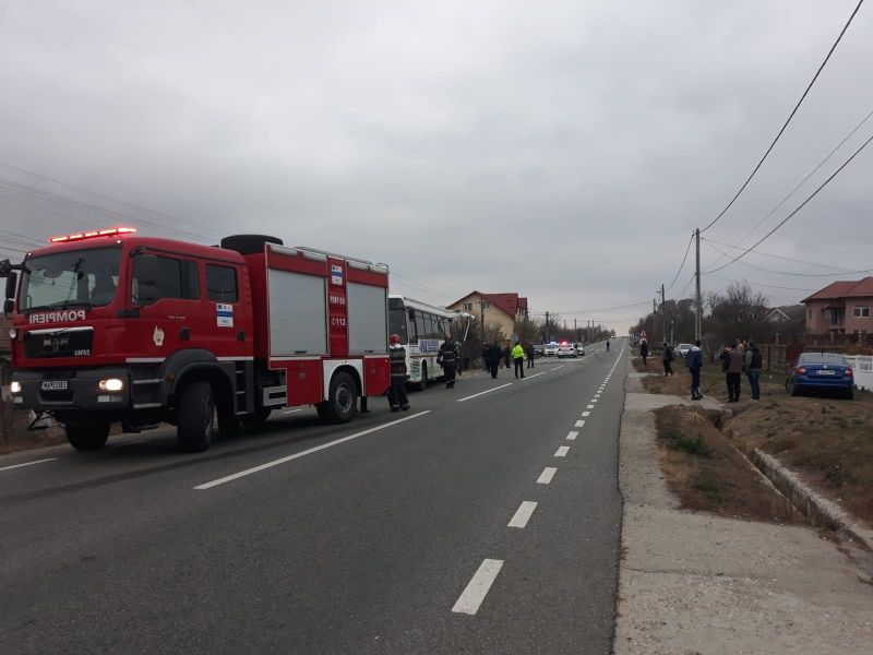Accident în Brănești! Două autobuze cu 80 de muncitori s-au ciocnit