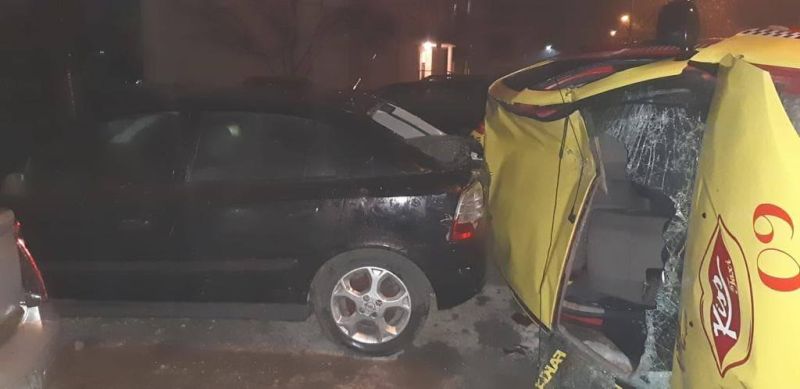 Două persoane au fost rănite, ieri dimineață, în urma unui accident rutier, produs pe raza municipiului Motru. Acestea se aflau într-un taxi care s-a ciocnit cu trei mașini parcate. ,,În jurul orei 05.00 am fost solicitați să intervenim pentru gestionarea unei situații de urgență generată de un accident rutier produs pe raza municipiului Motru, în care a fost implicat în autoturism care a acroșat alte trei autoturisme și s-a răsturnat.