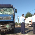 Evenimentul rutier a avut loc în urmă cu puțin timp, pe Drumul Național 67, în comuna Câlnic. Un microbuz de marfă, încărcat cu pepeni, a fost  acroșat de un tir. În urma impactului, microbuzul a ricoșat într-un autoturism Dacia Logan, care era parcat în fața unei gospodării. Primele verificări arată că vinovat este conducătorul autoutilitarei, care nu ar fi acordat prioritate autocamionului. Trei persoane din microbuz și un pasager din autocamion au suferit leziuni. Medicii spun că se află în afara oricărui pericol. Cele patru persoane au fost transportate la spital. Șoferul microbuzului are 25 de ani și este din Castranova, din Dolj, iar cel al tirului are 37 de ani și este din municipiul Târgu-Jiu. Printre victime se află și doi adolescenți  în vârstă de 16, respectiv 17 ani.