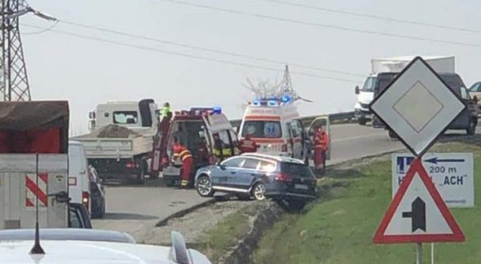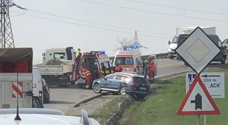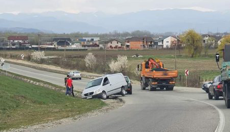 Participanții la trafic au fotografiat o mașină lovită aflată în șanțul de pe marginea drumului. Nici în acest caz nu s-au înregistrat victime.