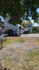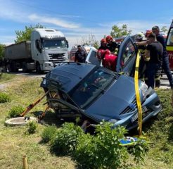 Unul dintre autoturisme a ajuns în șanț, lovind semnul de trecere de pietoni și doborandu-l la pământ. Un camion este implicat, fiind lovit în partea din față.
