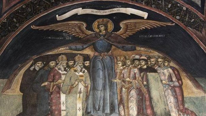 Cinstirea Sf. Acoperănănt al Maicii Domnului debutează în veacul al al V-lea cănd Acoperămăntul (maforionul), Brăul și Cămașa (tunica) Preacuratei și Preasfintei Fecioare Maria ajung în capitala Imperiului bizantin.
