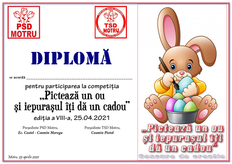Micuții au desenat ouăle pe care le-au prezentat rând pe rând, primind în schimb o diplomă, câte un iepuraș de ciocolata și multe alte dulciuri.