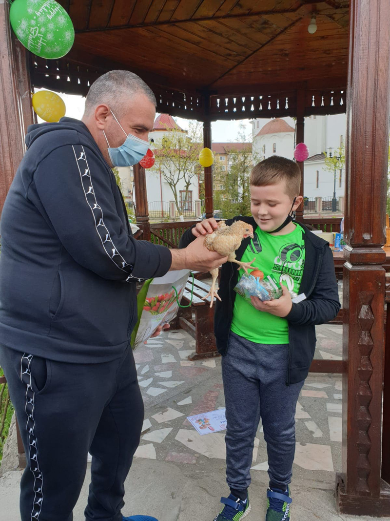 La finalul evenimentului, micuții au ciocnit ouă între ei, iar trei dintre câștigători au primit câte un pui viu.