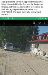 Agentul de poliție Beșliu Silviu Mihai, de la Poliția Turceni, este acuzat, într-o postare care circulă pe rețelele de socializare, că și-ar petrece timpul aferent serviciului la un restaurant din satul Ceplea.