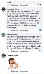Postarea a stârnit numeroase comentarii în mediul on line, comportamentul tânărului polițist fiind criticat de cetățeni. Chiar cel care a postat fotografia cu mașina Poliției la restaurant a precizat că el nu a vrut să dea o notă proastă Poliției, ci doar să atragă atenția că unii polițiști nu își fac cum trebuie datoria. IPJ Gorj este obligat să verifice dacă cele precizate în postare sunt sau nu adevărate.