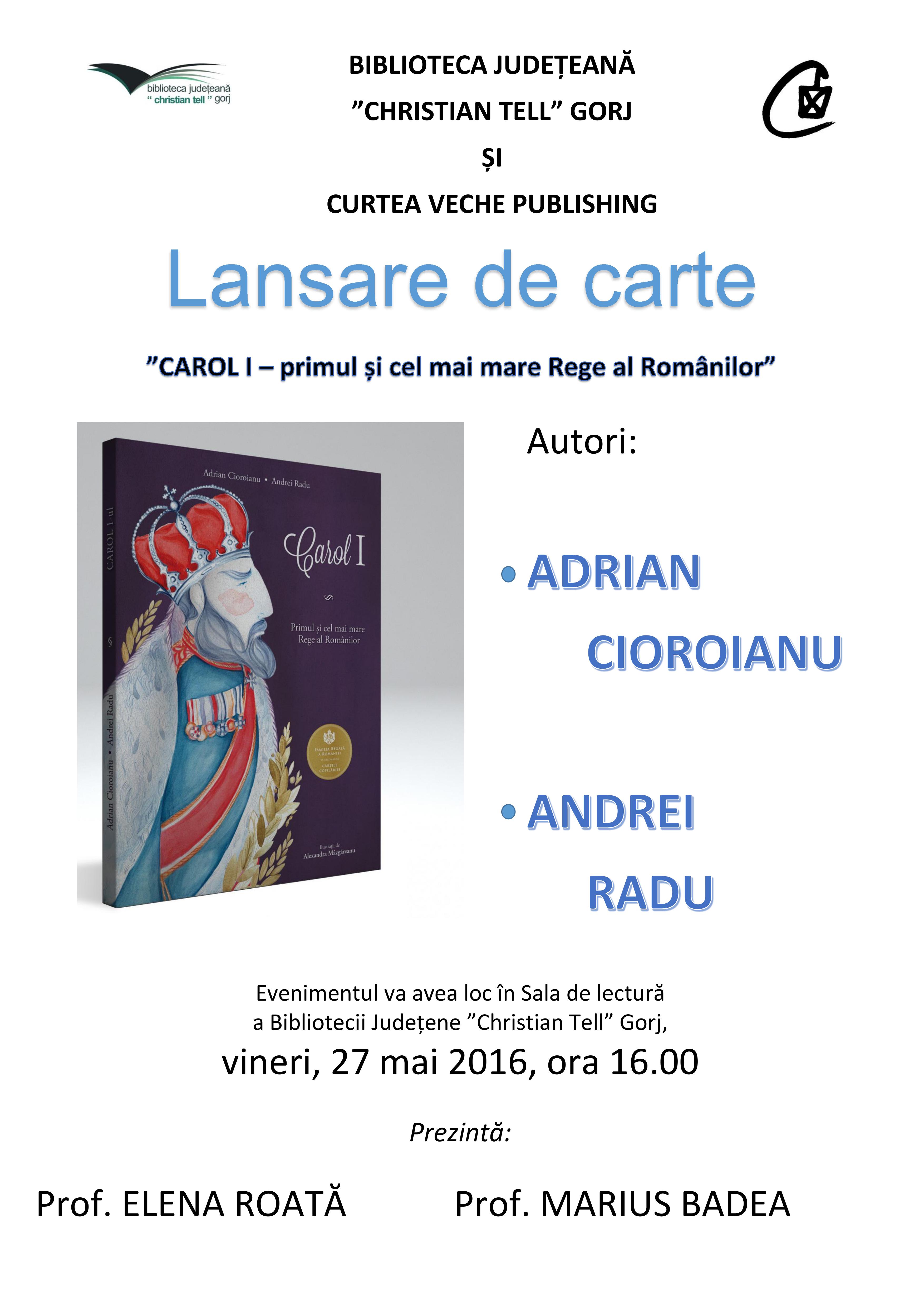 Adrian Cioroianu va veni din nou la Târgu-Jiu. De această dată, istoricul își va lansa cartea ”Carol I – primul și cel mai mare Rege al românilor”, scrisă împreună cu Andrei Radu. Evenimentul va avea loc vineri, 27 mai, începând cu ora 16:00, la Biblioteca Județeană ”Christian Tell”.