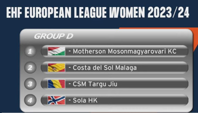 GRUPA D: Motherson Mosonmagyarovari KC (HUN), Costa del Sol Malaga(ESP), CSM Târgu Jiu (ROU), Sola HK(NOR)