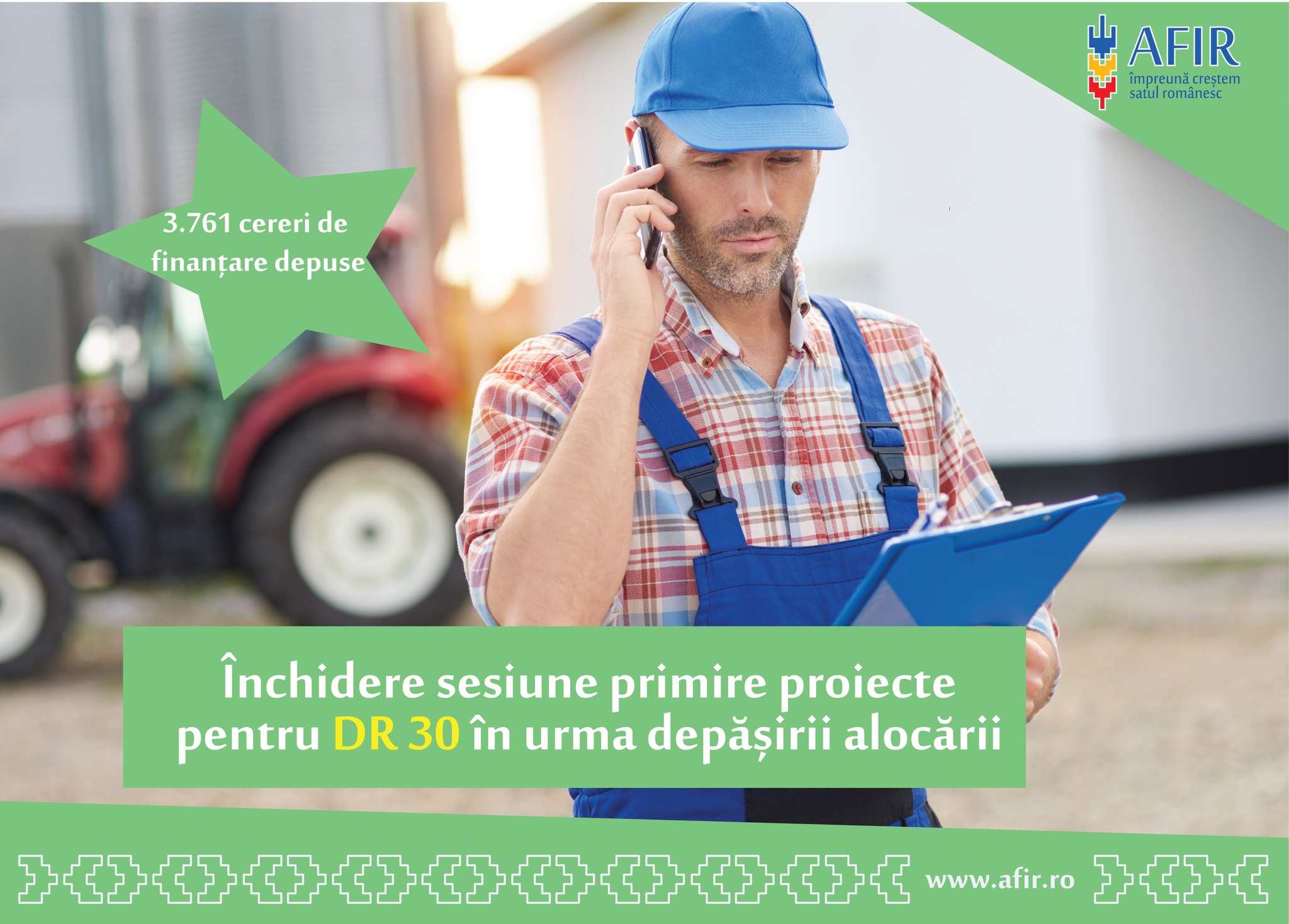 Agenția pentru Finanțarea Investițiilor Rurale (AFIR) anunță epuizarea fondurilor disponibile pentru intervenția DR-30 Sprijin pentru instalarea tinerilor fermieri, componenta națională din cadrul Planului Strategic pentru Politica Agricolă Comună 2023 – 2027 (PS PAC 2027).