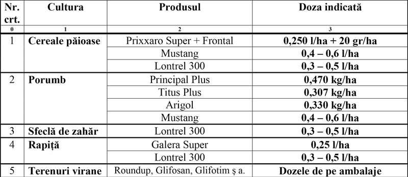 Notă – în cazul ierbicidării totale cu Roundup sau alte produse pe bază de glifosat se poate face și ierbicidarea punctuală, aplicând produsele numai pe plantele de ambrozia, de preferință înainte de începutul înfloritului.