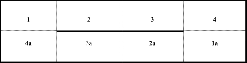 1 – Schița unui modul cu 2 x 4 compartimente. Linia întreruptă presupune pereții despărțitori prevăzuți cu ferestre de comunicare în partea inferioară