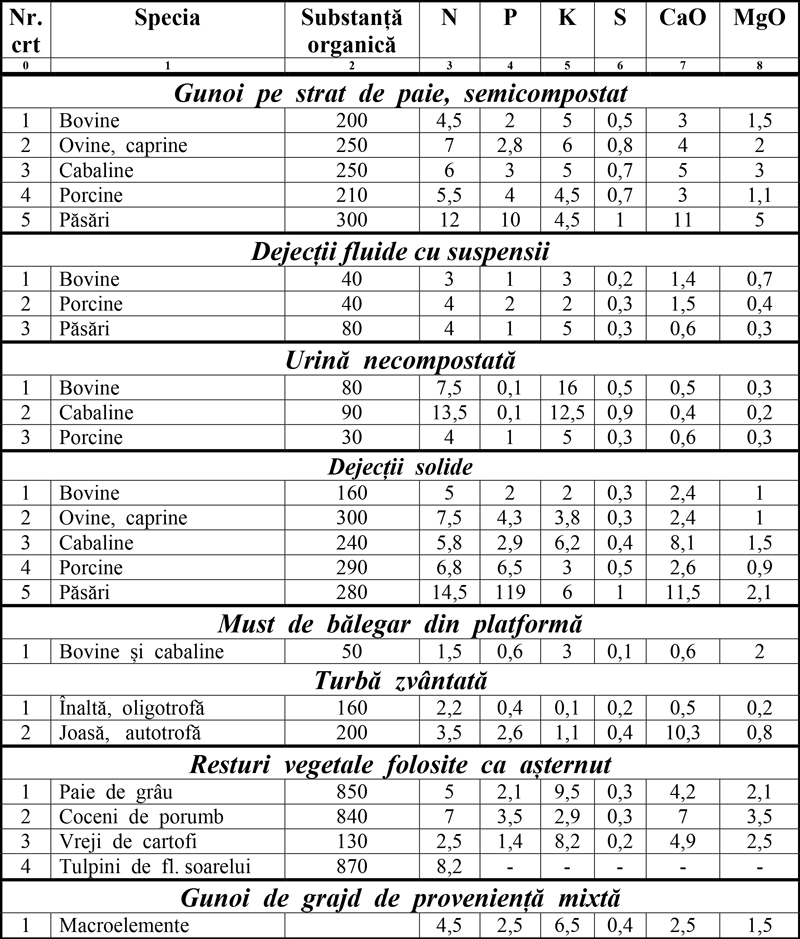 1 – Compoziția chimică și valoarea de utilizare a gunoiului de grajd.
