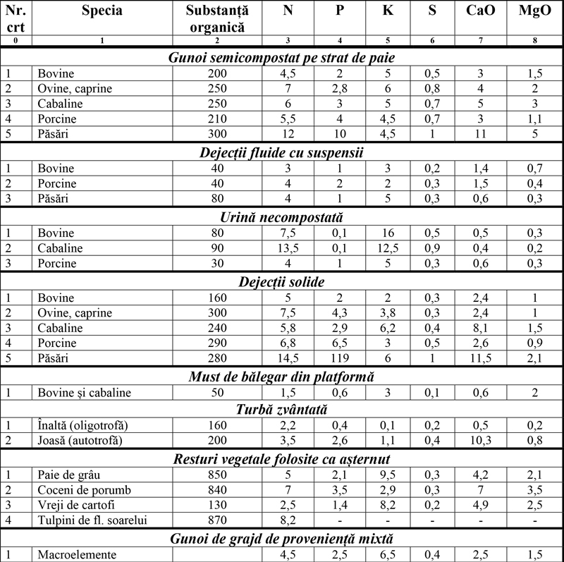 Conținutul în elemente nutritive al îngrășămintelor organice