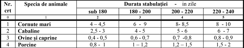 Notă: Pentru aprecierea cantității de bălegar produsă într-un an se înmulțește greutatea animalului cu următorii coeficienți: