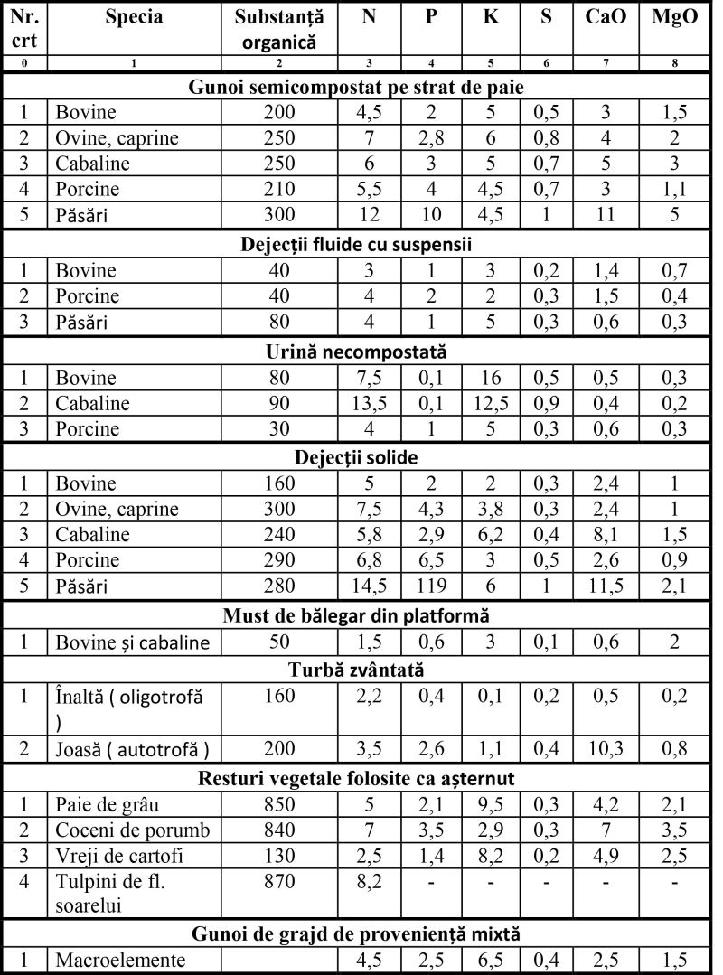 Conţinutul în elemente nutritive al îngrășămintelor organice