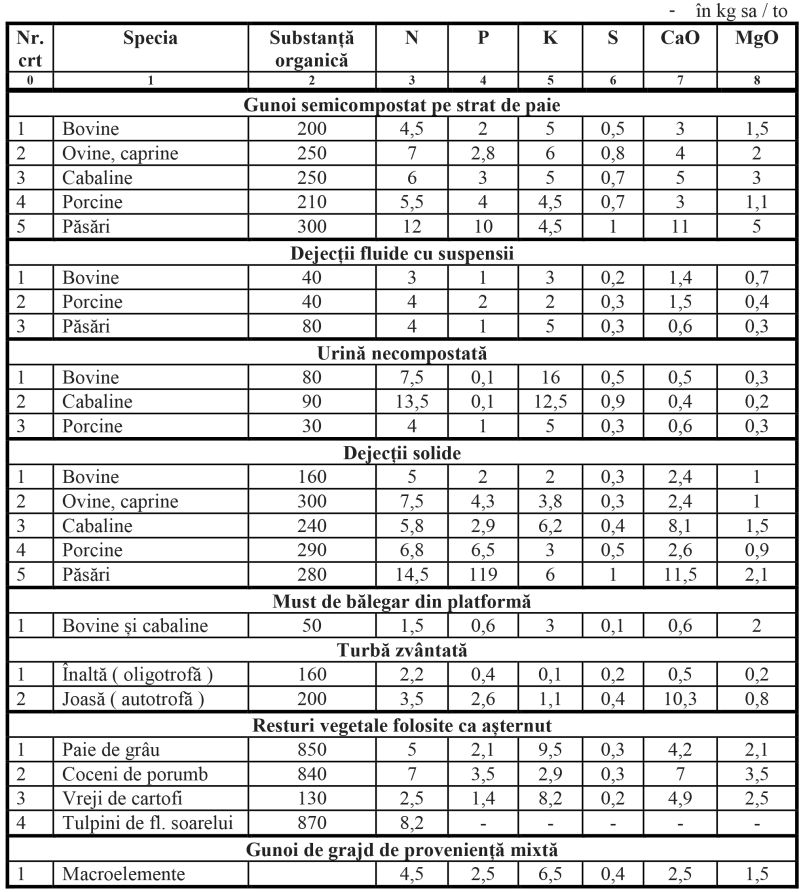 Conţinutul în elemente nutritive al îngrășămintelor organice