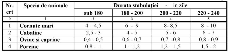 Pentru aprecierea cantității de bălegar produsă într-un an se înmulțește greutatea animalului cu următorii coeficienți: