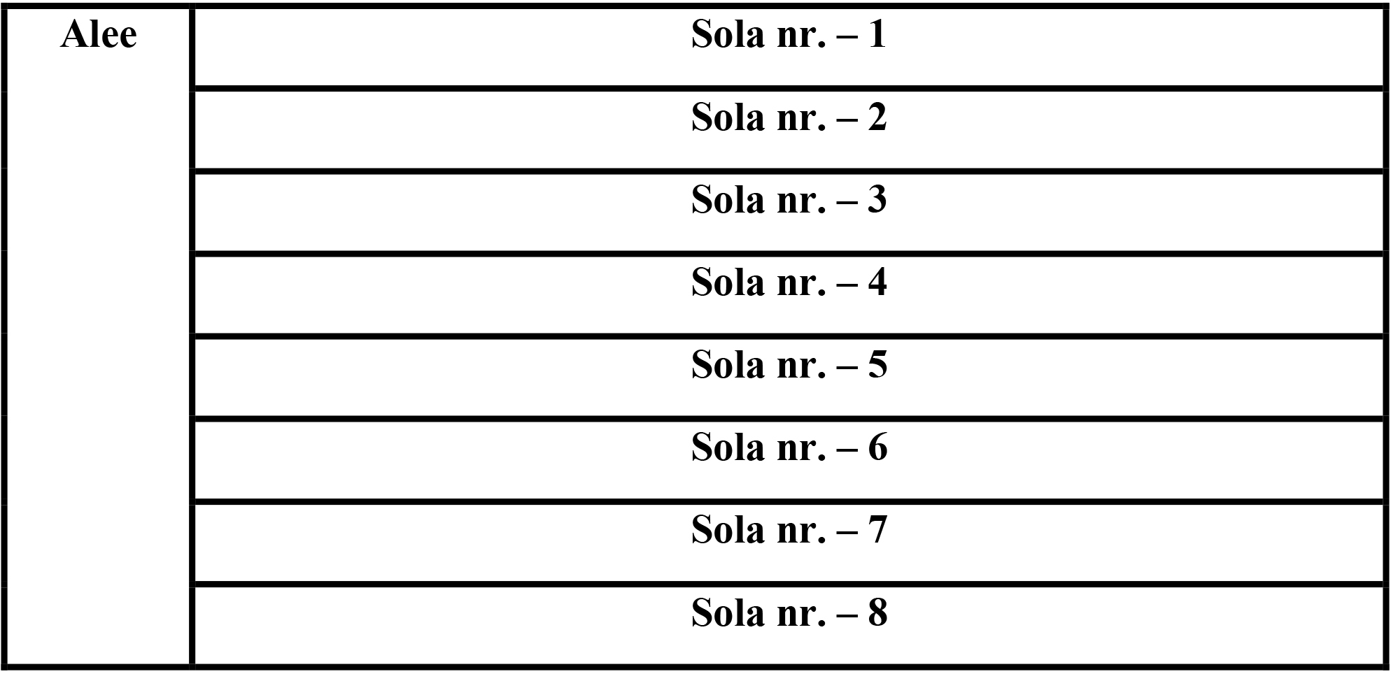 Organizarea terenului în sole presupune divizarea acestuia într-un număr 6 – 8 parcele de cultură sistematizate în asolamente legumicole de tot atâţia ani, precum şi o parcelă separată, în afara asolamentului, care să cuprindă culturile perene (hrean, leuștean etc), după modelul următor: