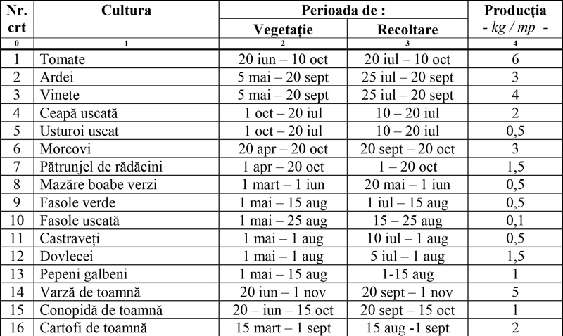 Este realmente util pentru dumneavoastră să cunoașteți aceste date ca să știți când și câtă grădină să înființați, în funcție atât de nevoile proprii, cât și de intențiile de comercializare.