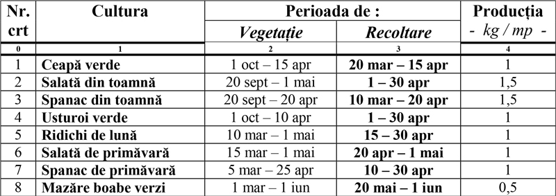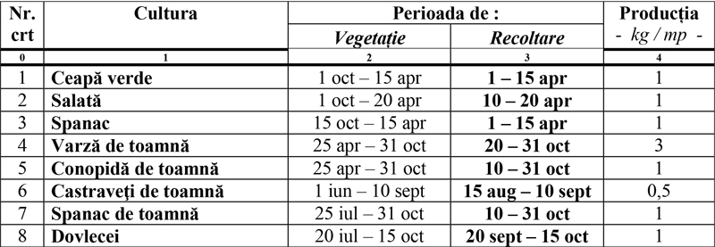 1 – La culturile anticipate înființate între 1 octombrie și 1 aprilie anul următor.