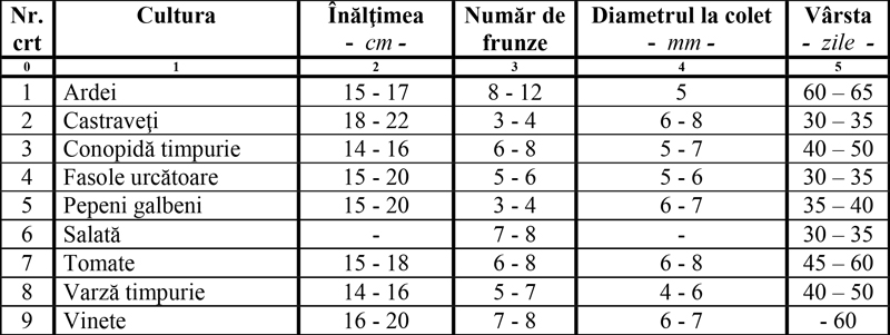 Indicii de calitate a răsadurilor de legume în momentul plantării.