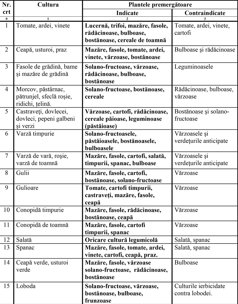 Cele mai bune plante premergătoare pentru legume sunt: