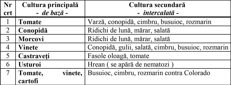 Astăzi se apreciază că la 4 rânduri de cartofi, vinete sau tomate este bine să fie un rând de busuioc, rozmarin, lavandă sau cimbru. Dacă bordurăm solele și cu crăițe și hrean avem un spor de certitudine în protecția acestor culturi. De altfel busuiocul, cimbrul, lavanda, crăițele, hreanul, rozmarinul pot și trebuie să fie intercalate printre toate culturile legumicole. Le vor proteja și vor crea aspecte și atmosferă plăcute locului respectiv.