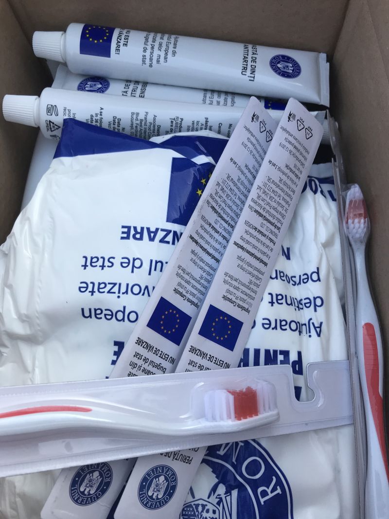 Autoritățile locale au la dispoziție în aceste zile mii de pachete cu produse de igienă oferite în mod gratuit de Uniunea Europeană și Guvernul României, dar multe dintre acestea încă nu au ajuns la destinatarii lor. Oamenii sunt mai puțin interesați de preluarea lor decât erau de cele care conțineau alimente și erau distribuite în anii anteriori. Până acum despre cele cu alimente autoritățile nu au prea multe vești, așa că încearcă să îi convingă pe oameni să vină și să ridice cutiile care conțin periuțe de dinți, pastă de dinți, săpun lichid, șampon și detergent. La Târgu-Jiu operațiunea a început de săptămâna trecută, dar numărul celor interesați să ridice pachetele oferite gratuit nu este unul deosebit. Circa o treime din cei aproximativ 1500 de beneficiari au venit până în spațiul din incinta noului stadion municipal pentru a ridica pachetele UE. Timp mai este pentru că acestea se distribuie pe parcursul a 45 de zile de la începerea operațiunii. Ieri, o beneficiară a acestor pachete a trebuit să cheme un taxi pentru a putea duce toate cutiile acasă. „Am patru copii și împreună cu soțul suntem șase persoane. Se dă câte o cutie de persoană, așadar sunt șase cutii. Nu aveam de unde să știu că sunt atâtea.