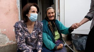 Următoarea oprire a fost la tanti Paraschiva, o bătrână de 81 de ani care, locuiește și se gospodărește singură. Cu primit cu multă bucurie alimentele, dar și produsele tradiționale sărbătorilor pascale.