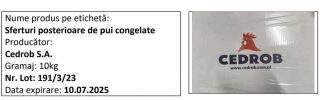 ANSVSA a emis o alertă alimentară privind un lot întreg de carne de pui ce a fost retras de la comercializare. Carnea este contaminată cu Salmonella Enteritidis. În cazul în care au cumpărat produsul, clienții sunt sfătuiți să nu-l consume, ci să îl returneze în magazinul de la care l-au achiziționat, în baza bonului fiscal.