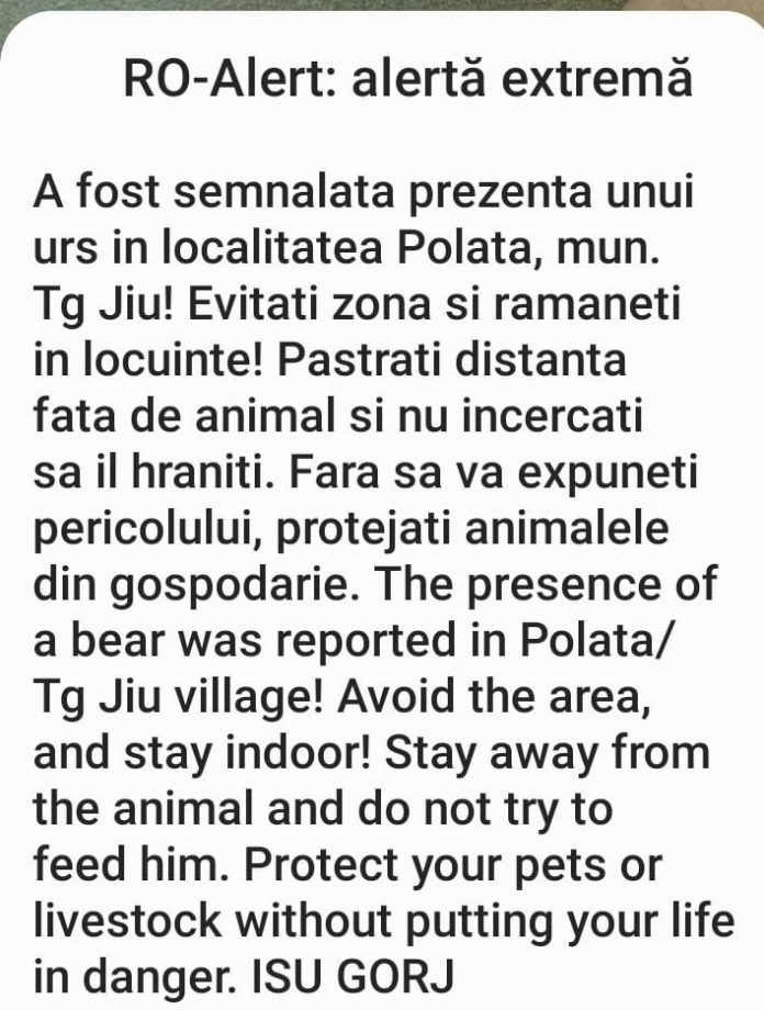 Aproape de miezul nopții a fost dată alerta care semnala prezența unui urs în cartierul Polata, Târgu Jiu.În ultima parte a acestui an, alertele s-au înmulțit, urșii făcând pagube în gospodăriile oamenilor din Gorj.