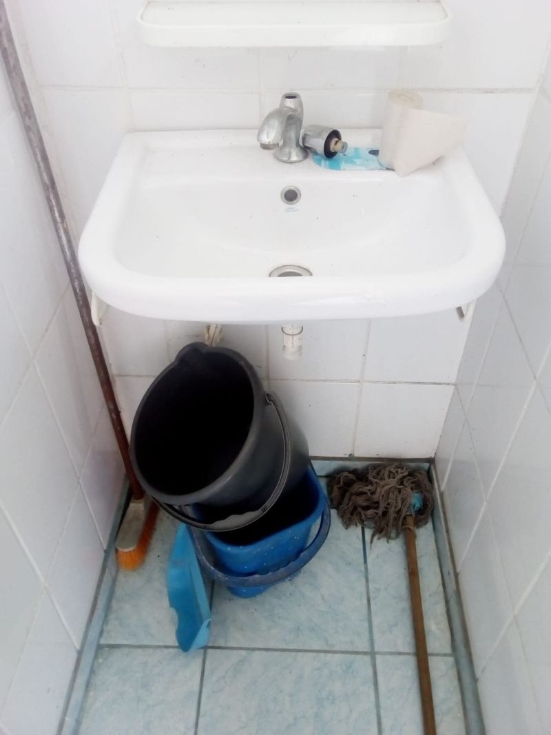 Așa au văzut că nu se puteau spăla pe mâni pentru că nu era apă și nici nu puteau trage apa la toaletă din același motiv. În grupul sanitar erau în schimb niște găleți goale și un bidon.În sala de clasă exista, de asemenea, o găleată cu apă pentru uzul membrilor secției de votare.