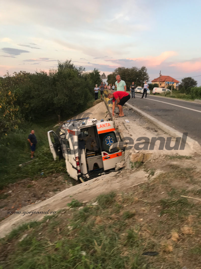 întâmplate este acum cercetat pentru vătămare corporală din culpă. El era angajatul unei firme private, patronul acesteia, prezent la locul accidentului, refuzând să facă vreun comentariu cu privire la cele întâmplate. Primele informații arată că șoferul respectiv este tot din județul Mehedinți. „Din cercetările efectuate de polițiști a reieșit faptul că un tânăr, de 25 de ani, din comuna Bala, județul Mehedinți, în timp ce conducea un autoturism pe DN 67 Cornești, din direcția comunei Telești către municipiul Târgu-Jiu, a efectuat manevra de viraj la stânga, moment în care din aceeași direcție s-ar fi angajat în manevra de depășire o ambulanță condusă de un bărbat, de 62 de ani, din municipiul Drobeta Turnu Severin, care a intrat în coliziune cu autoturismul, autospeciala fiind proiectată în afara părții carosabile. În urma impactului a rezultat rănirea conducătorului auto de 62 de ani, a unui bărbat, de 51 de ani, din municipiul Drobeta Turnu Severin și a două femei, de 52 și 67 de ani, din municipiul Drobeta Turnu Severin și comuna Corcova, județul Mehedinți, care se aflau în autospecială. Persoanele rănite au fost transportate la spital pentru acordarea de îngrijiri medicale. Conducătorii auto au fost testați cu aparatul etilotest, rezultatul fiind negativ. În cauză s-a întocmit dosar penal sub aspectul săvârșirii infracțiunii de vătămare corporală din culpă”, a transmis IPJ Gorj.La scurt timp, după ce pacientul infectat cu noul coronavirus a ajuns la spitalul din Târgu-Jiu, din cauza multiplelor leziuni acesta a decedat.