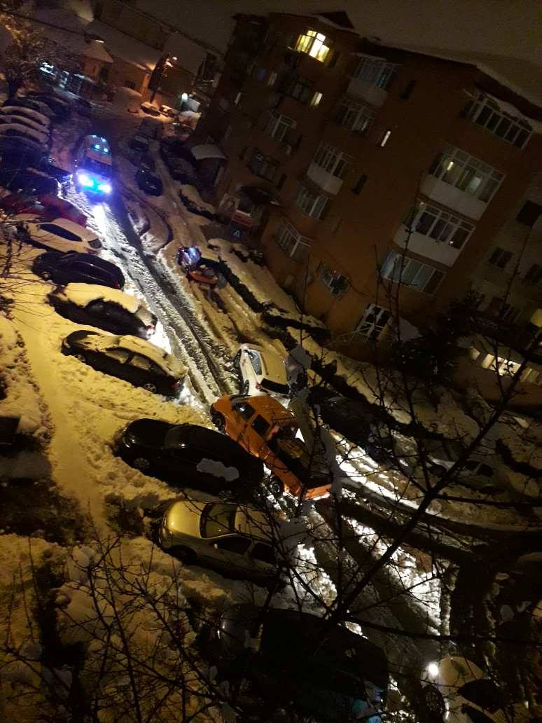 Abia acum circulația s-a reluat, deși mașina care a creeat ambuteiajul din cauza zăpezii, se află tot acolo. Locatarii din zonă anunță că strada este precar deszăpezită.